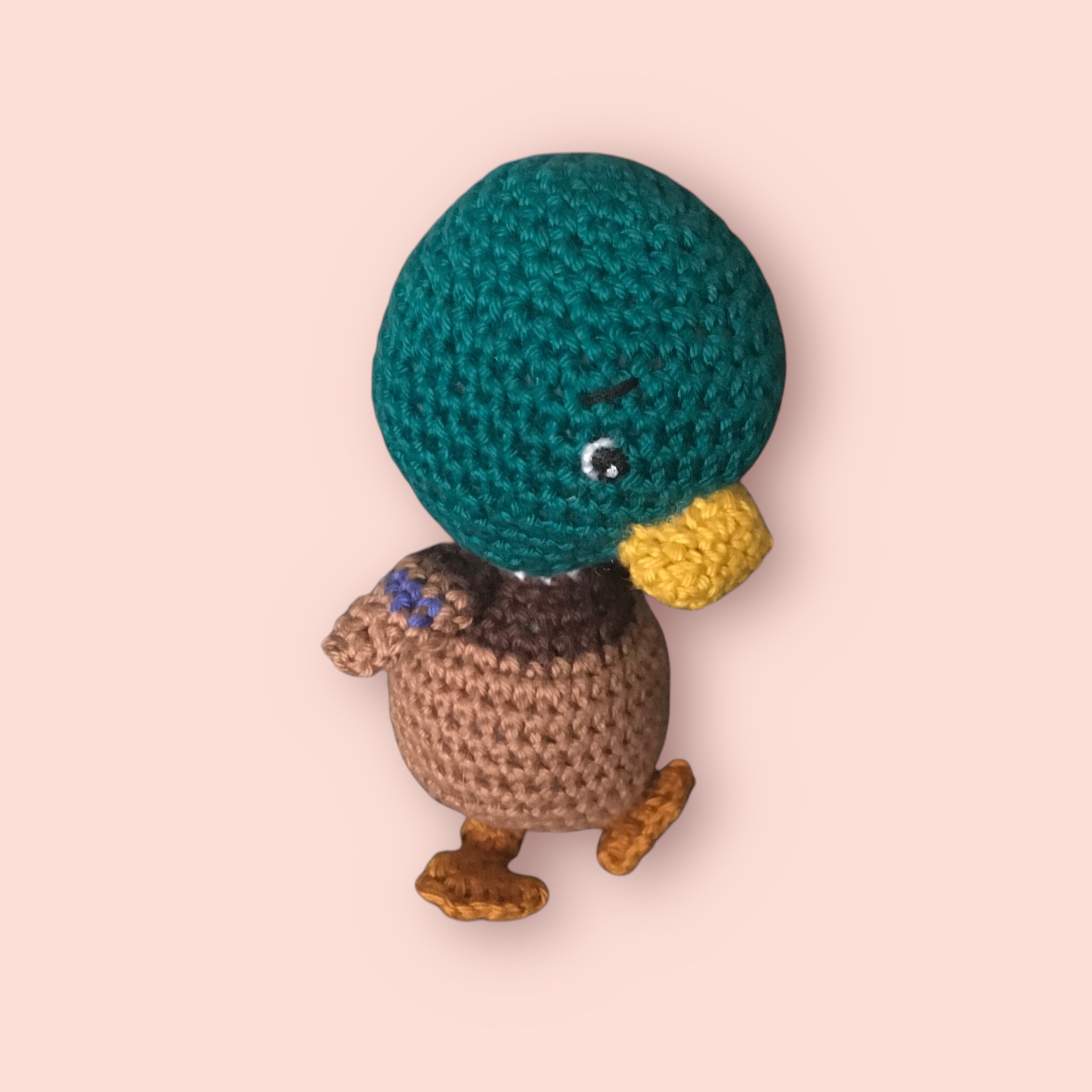Ajoutez une touche de nature à votre intérieur avec ce charmant canard col vert crocheté à la main. Un doudou original et plein de douceur.