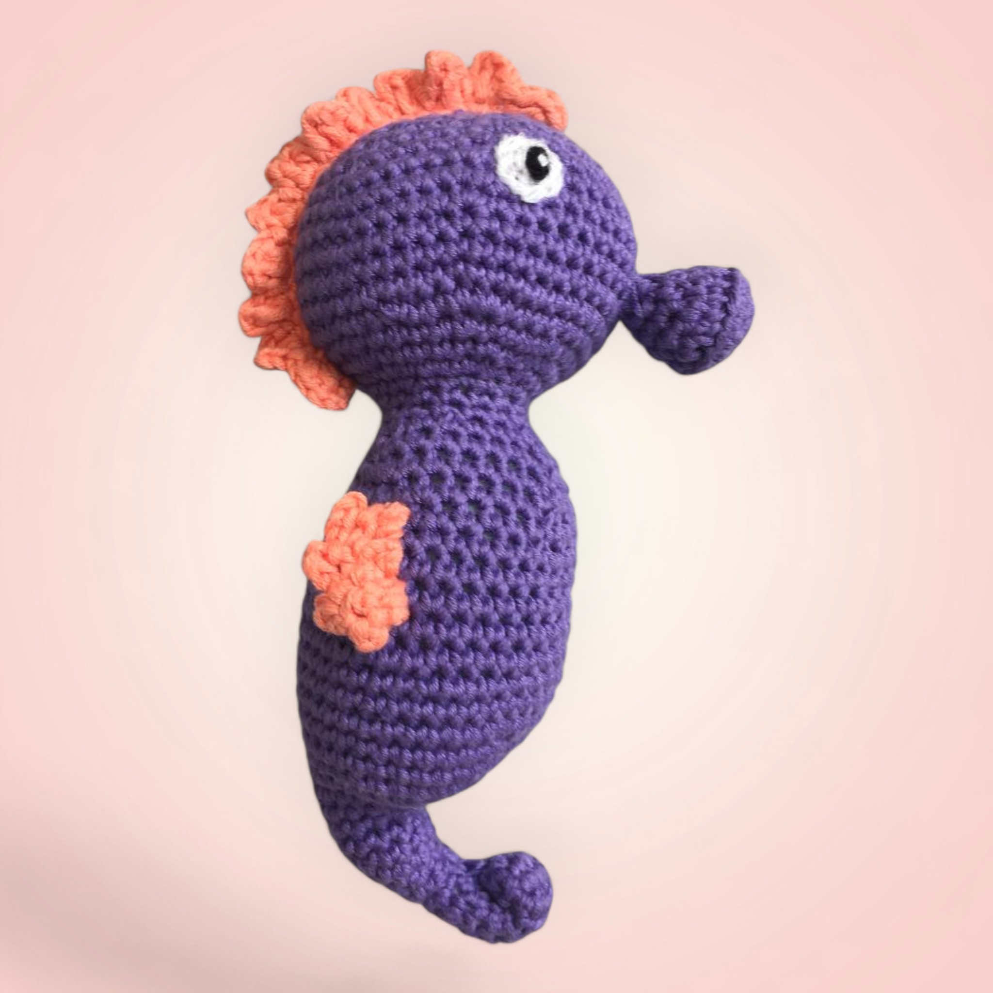 Cet hippocampe violet et orange est une véritable invitation au voyage sous-marin ! Confectionné avec amour et savoir-faire, ce doudou de 19 cm de hauteur est aussi original que mignon. Ses nageoires oranges et son corps violet lui donnent un charme irrésistible.