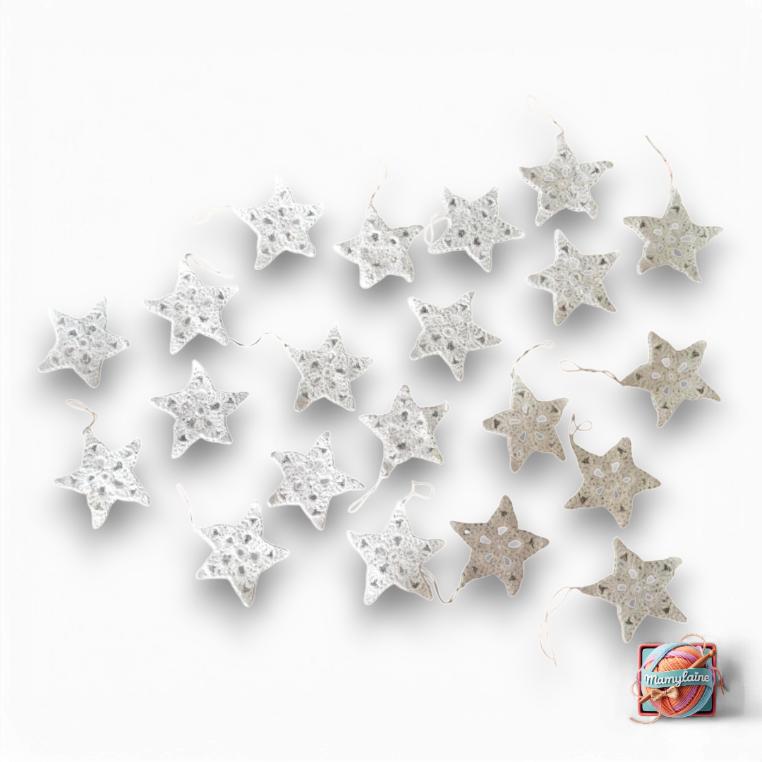 Ajoutez une touche de magie à votre sapin de Noël avec ce lot de 3 étoiles blanches crochetées. Confectionnées avec un joli fil duveteux et brillant, ces étoiles de 8 cm de hauteur reflètent la lumière et créent une ambiance féérique.