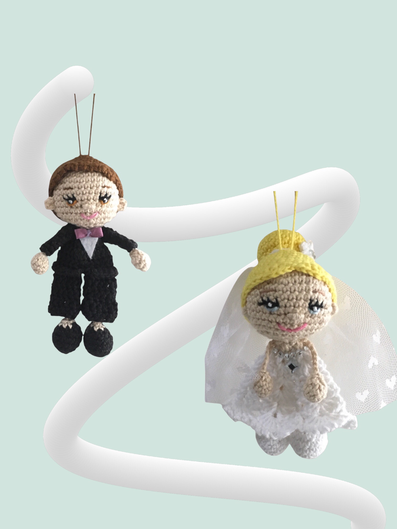 Découvrez le couple de petite mariée de 13 cm, une création authentique faite à la main par MamyLaine