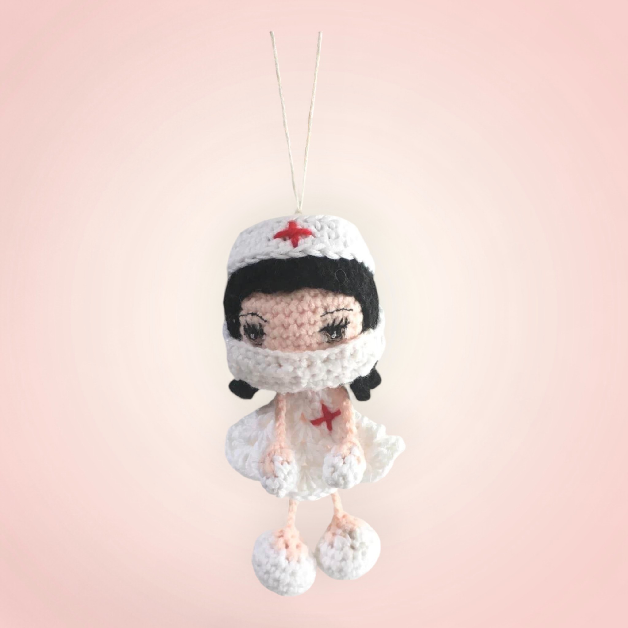 Offre un peu de réconfort avec ma petite infirmière bretonne en crochet, une création artisanale unique pour la voiture ou un cadeau !