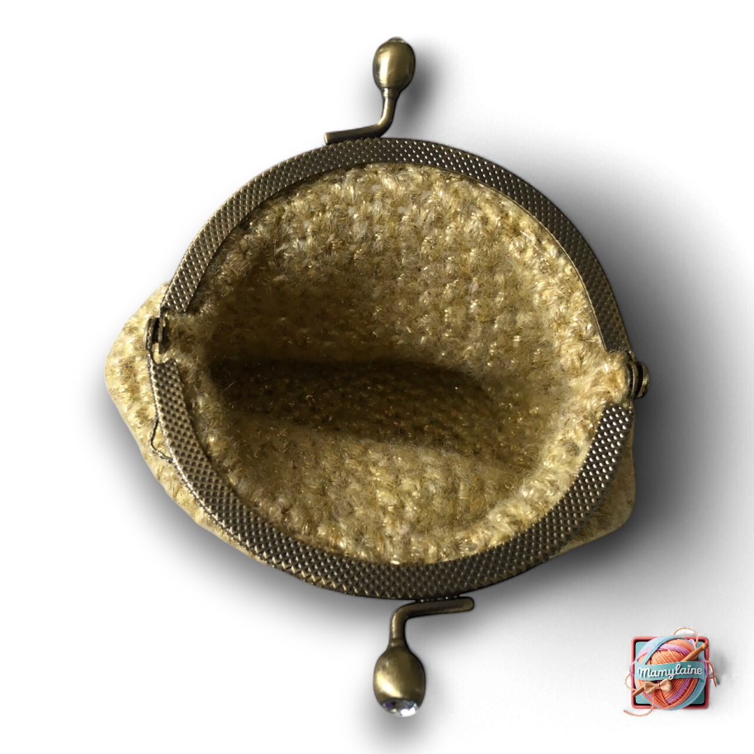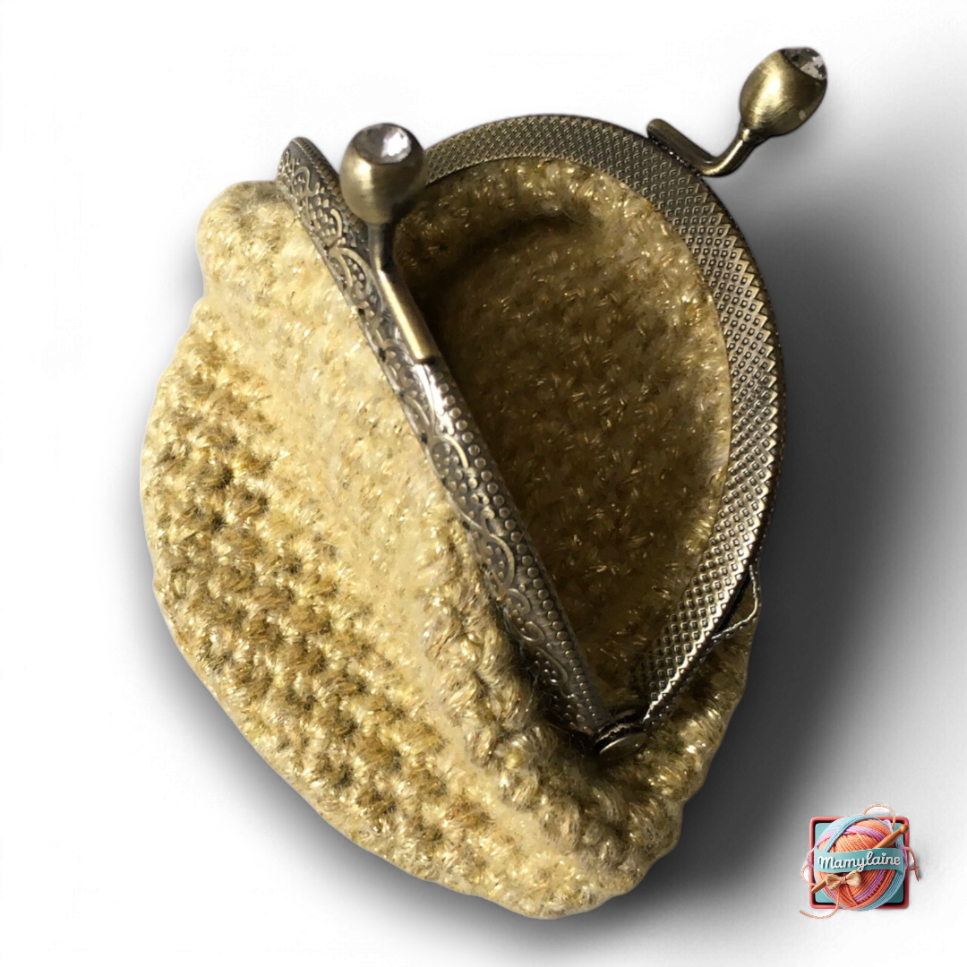 Ce magnifique porte-monnaie doré est un véritable bijou ! Réalisé avec une laine dorée et brillante, il apportera une touche de lumière et d’élégance à votre quotidien.