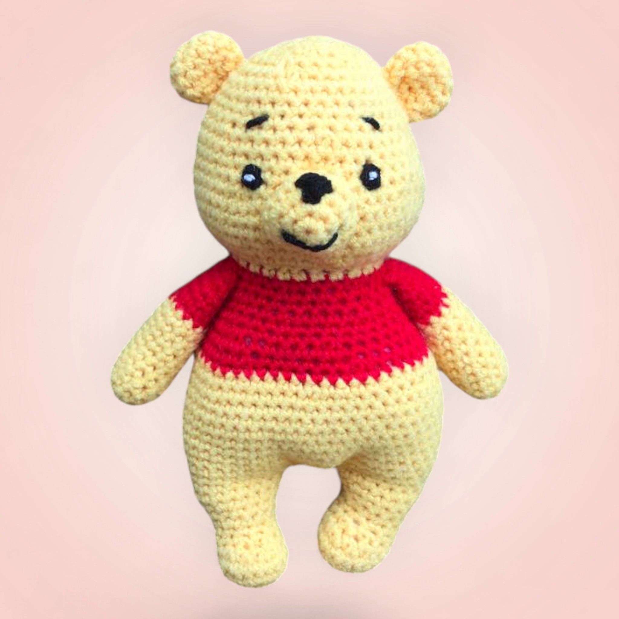 Winnie l’Ourson, le plus gourmand des oursons, prend vie sous la forme de cette adorable peluche crochetée à la main ! Avec son pull rouge et son air malicieux, ce doudou de 24 cm de hauteur est prêt à partager de merveilleuses aventures avec votre enfant.
